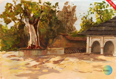 Description: This painting captures a quiet, sacred space where nature and architecture coexist in harmony. Soft light, earthy tones, and the sheltering tree evoke a sense of pause, reflection, and spiritual calm. Read More
