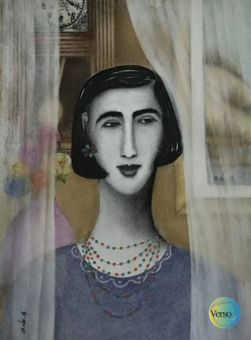 This painting is an abstract work with vivid colors depicting a spectacular idea of a Women.