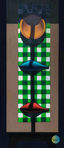This painting is an abstract work with vivid colors depicting a spectacular idea of a Man.