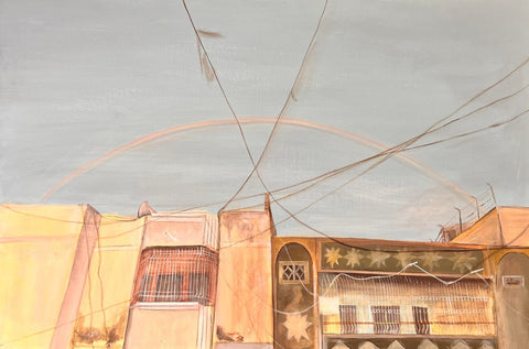 Description: An Oil painting that explores the feeling of being framed and enclosed. Inspired by the worn wooden doors and locks often found in Lahore, the work emphasizes texture, memory, and cultural presence rather than depicting a recognizable landmark. Read More