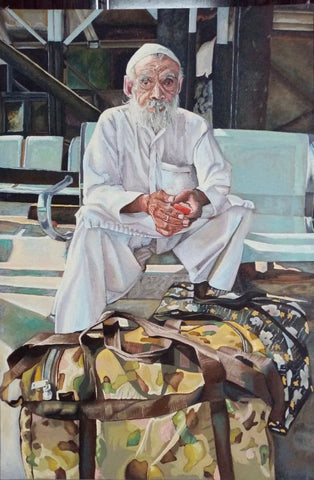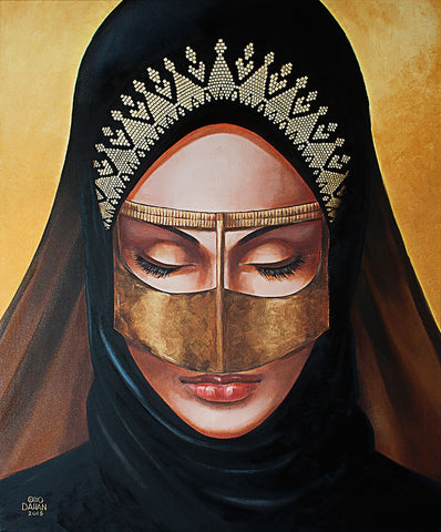 Description: This warm toned oil painting depicts a head covered women wearing precious jewellery. She is concealed with her eyes closed. Read More