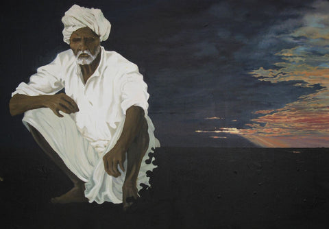 The painting shows a Nubian man beautifully painted in a landscape with blue sky.