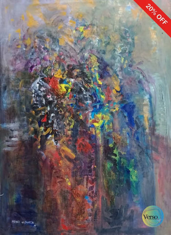 Humans have been hunting Elephant for ages, whether its for their ivory, and other unimaginable parts. Through this painting, Adi Pamungkas (also known as Apamungka) depicts an elephant attempting to blend with its surrounding, hoping to camouflage, in order to survive.