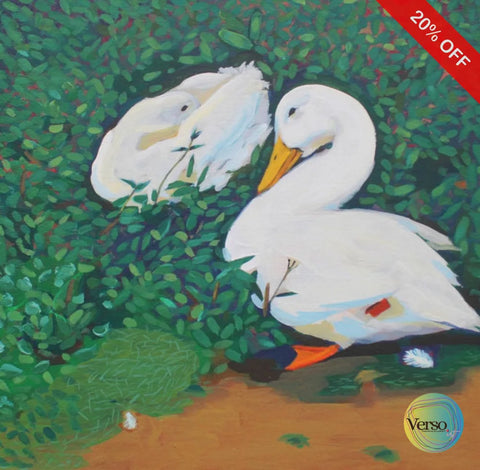 The artist paints two horse close to each other, both magnificent in brown and white on a grey background.