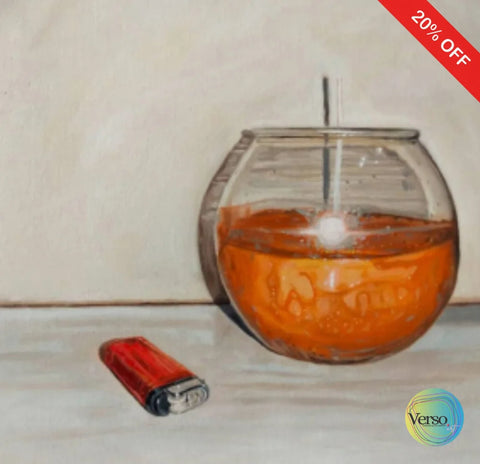Study of a candle and a lighter. Special emphasis was placed on the lighting projected by the photographic flash on the crystalline surface of the container.