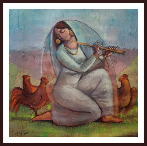 This oil painting is a serene sight of the beautiful fields of Punjab, Pakistan in some mid summer afternoon.