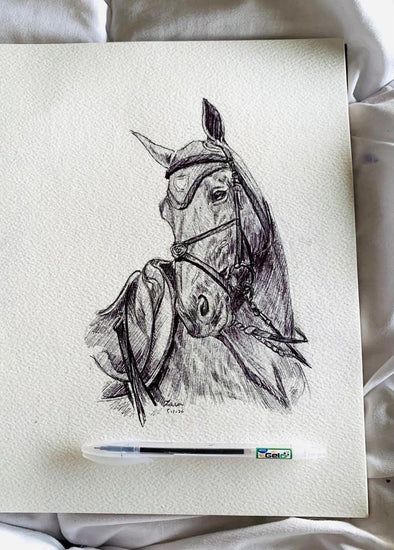 Pen drawings on A4 sheets capturing diverse moods, expressions, and emotional engagement of horses through line, movement, and detail. Each original work reflects their strength, sensitivity, and character.