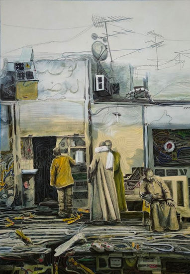 The artist plays with ink to create a scene of a local cafe in Egypt