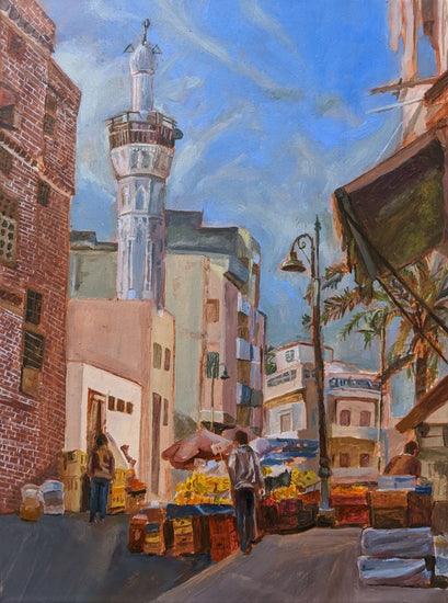 The oil painting depicts a scenery from the beautiful Rosetta (Rasheed), Egypt.